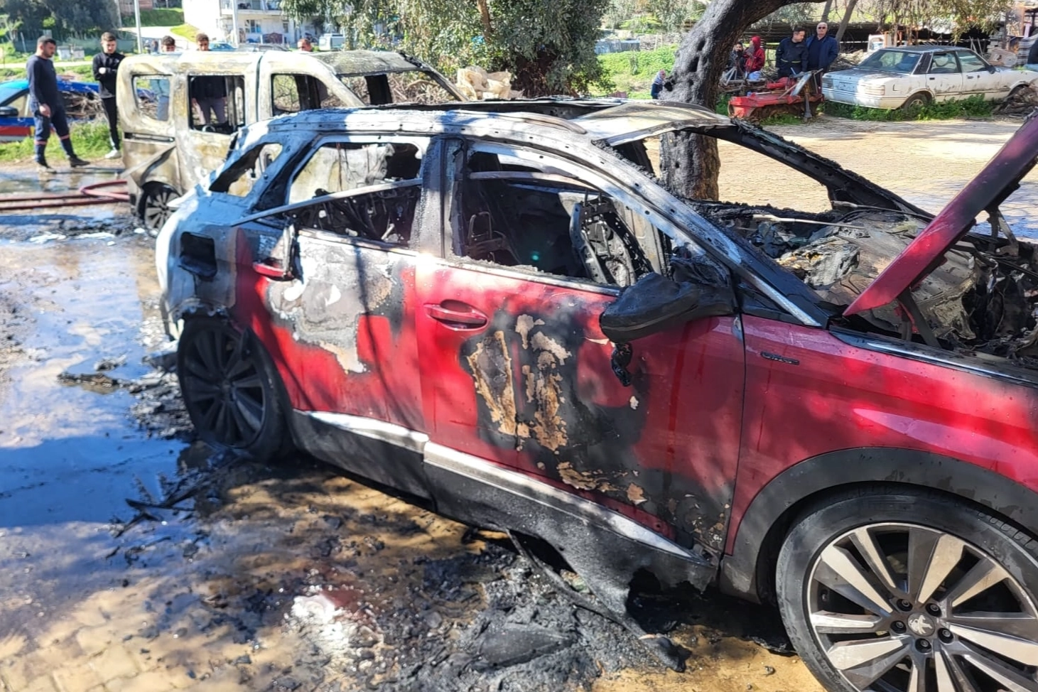 İtfaiye ekiplerince söndürülen yangında iki araç kullanılamaz hale geldi.