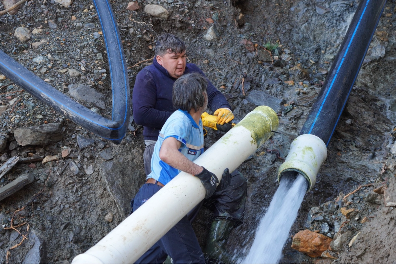 Drone destekli havadan yapılan tespitlerle yüzey ve alan analizi sağlanarak müdahale süreci hızlandırıldı. Yoğun yağışların etkisini sürdürmesiyle bölgede zaman zaman yeni toprak kaymaları yaşanmasına rağmen, depolara su iletiminin sağlanması ve sürekliliğin korunması amacıyla çalışmalar titizlikle tamamlandı.