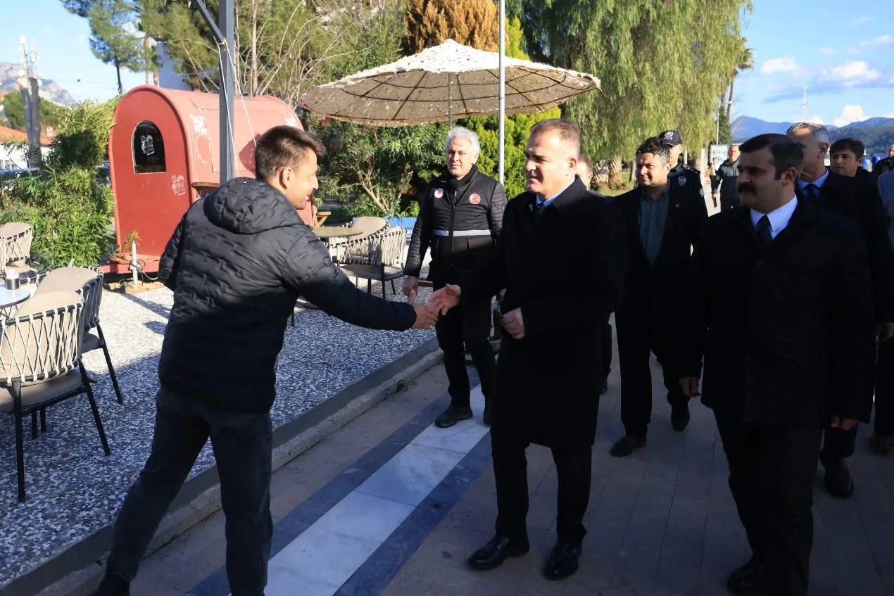 Vali Akbıyık, Köyceğiz Kaymakamı Mert Kumcu ile Köyceğiz Gölünde incelemelerde bulunarak göl kıyısında faaliyet gösteren ve yağışlardan zarar gören işletmeleri gezip esnaflara geçmiş olsun dileğinde bulundu.