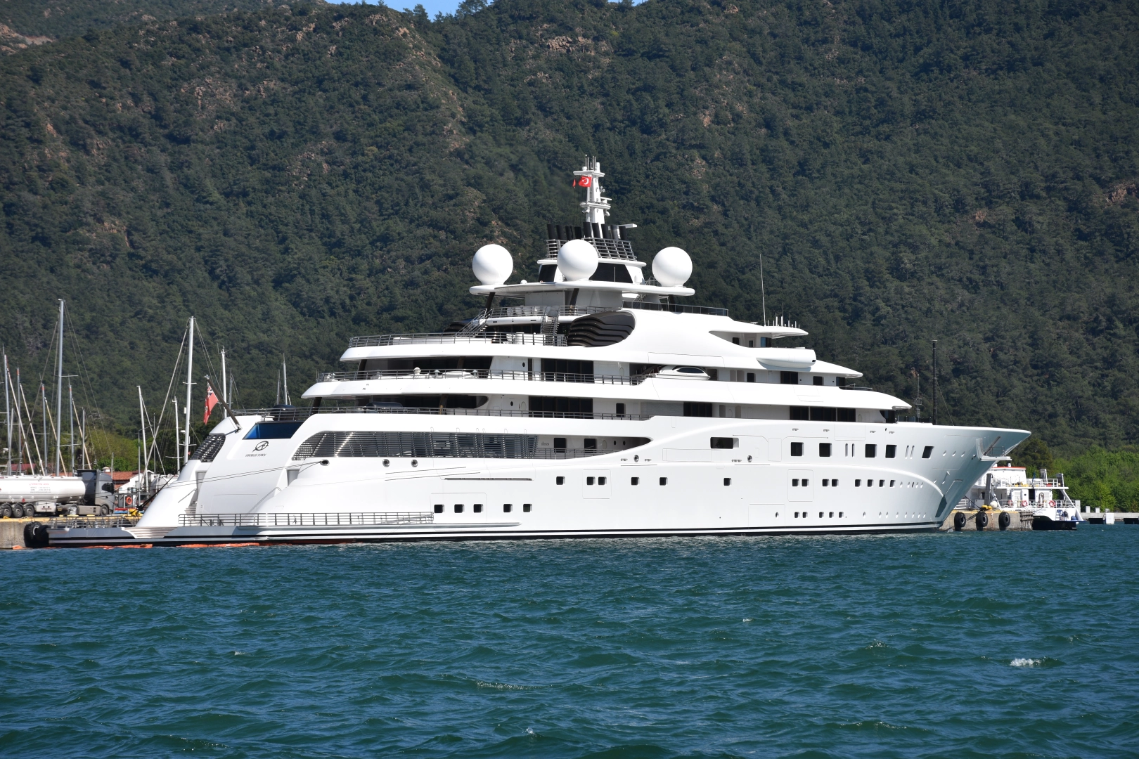 Dünyanın en büyük 10 yatından biri olarak gösterilen "A+", Marmaris Limanı'nın büyük rıhtımına yanaştırıldı.