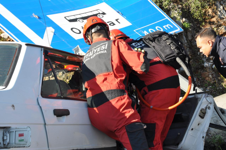 Muğla'da Otomobilde Sıkışan Yolcuyu İtfaiye Kurtardı