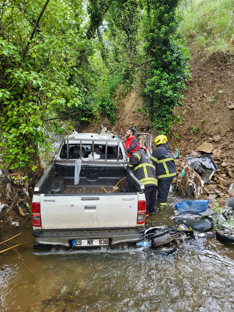 Nazilli-Beydağ kara yolu Rahmanlar Mahallesi mevkisinde M.İ. idaresindeki 09 NR 838 plakalı pikap, sürücüsünün direksiyon hakimiyetini kaybetmesi sonucu dere yatağına devrildi.