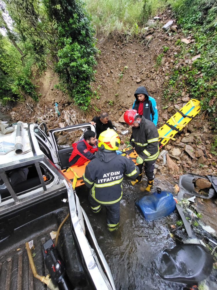 Nazilli'de Dere Yatağına Devrilen Pikaptaki 2 Kişi Yaralandı