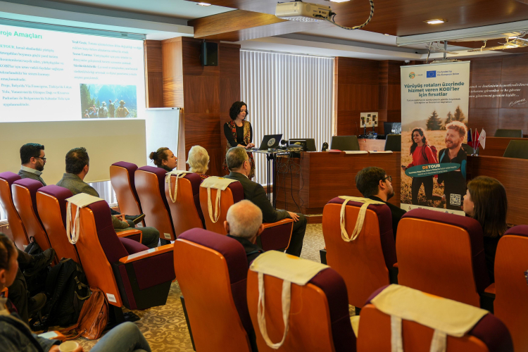 İtalya, Türkiye, Bulgaristan ve Yunanistan’da eş zamanlı olarak yürütülen DETOUR Projesi ile Akdeniz bölgesindeki kırsal ve tarihi yürüyüş rotalarında sürdürülebilir ve dayanıklı turizm ekosistemlerinin geliştirilmesi amaçlanıyor. Türkiye’den pilot bölge olarak seçilen Likya Yolu hattında faaliyet gösteren KOBİ’lerin dijital dönüşümünün desteklenmesi, finansmana erişimlerinin kolaylaştırılması ve sürdürülebilir turizm modellerinin hayata geçirilmesi hedefleniyor. Toplam bütçesi 2 milyon avro olan ve üç yıl sürecek proje kapsamında; Likya Yolu üzerinde faaliyet gösteren otel ve pansiyonlar, kamping ve bungalov işletmeleri, restoranlar, tekne turları düzenleyen firmalar ile acente ve rehberler projeye dahil edildi. Kasım 2024’ten bu yana devam eden çalışmalarda, işletmelerin mevcut yönetimsel ve çevresel durumlarının tespit edilmesine yönelik anketler yapıldı. Elde edilen veriler doğrultusunda KOBİ’lere özel eğitim programları oluşturularak alanında uzman eğitmenler belirlendi.