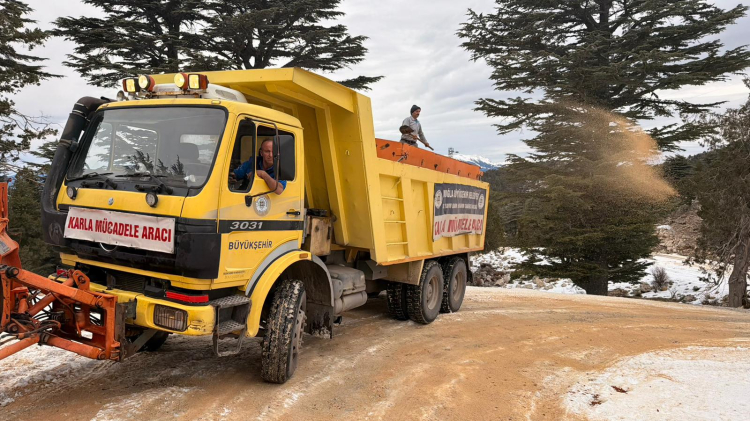 Bölgede ulaşımda aksamaların yaşanmaması için ekipler tarafından kar küreme ve tuzlama çalışmaları yürütülürken, özellikle kırsal ve yüksek rakımlı mahallelerde yolların açık tutulmasına öncelik veriliyor. Yoğun yağışın etkili olduğu noktalarda iş makineleriyle müdahale edildiği bildirildi.