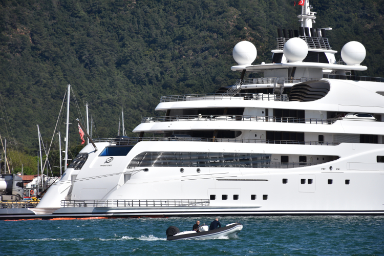 Cayman Adaları bayraklı 149 metre uzunluğundaki lüks yat "A+" Muğla'nın Marmaris ilçesine geldi.
